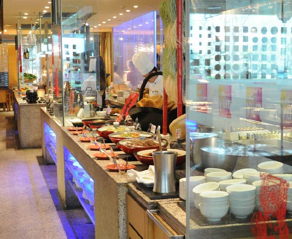 一品堂自助餐厅拥有九个美食档,九种不同美食风味的国际料理餐厅等你来尝。环球美食自助餐,剧院厨房和诱人美味的最佳选择。美食节期间,宾客们可以在午餐和晚餐时领略西安美食的独到之处。