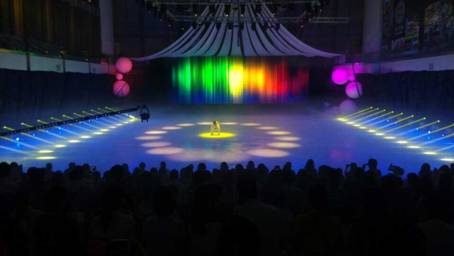 为充分营造演出氛围,本次演出将使用超过100只电脑灯,利用巨幕LED及投影仪制造出美轮美奂的舞台效果,通过不断变幻空中和冰面的色彩,将舞台打造成前所未有的冰上仙境。大型LED背景,与冰上演出有机融为一体。垂幕舞台既像是一个童话城堡,又像森林中的梦幻小屋。时空背景不断变幻,奇妙而富有想象力,与舞蹈、音乐、冰面、观众共同构成了一个如梦如幻的世界,让人遨游其中,流连忘返。