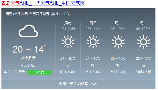 青岛今日晴转多云16℃-24℃ 周末晴好最高21℃