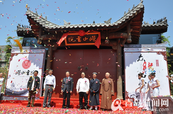 崂山书院位于崂山区崂山路中段281号(原雨林谷景区),沙子口东侧,毗邻崂山风景区,总占地面积400亩。园区内设有公共服务区、文化景观浏览区和国学文化深度体验区三个区域,完整地移植了来自安徽200多年的20座珍贵木结构徽派建筑。主要包含有主题馆、国学馆、聚缘阁、太岁殿、国粹民俗馆、归真堂、菩提苑、茶社、有机生态馆、老房子酒店十个主题馆;集修学、研究、展示、讲学、会议、接待为主要功能的生态文化园;集修真、养心、参悟道家养生文化为主题及儒释道传统文化研修、学习的文化体验道场。另外,客人还可在此进行观光旅游、养生休闲或者商务交流,必将成为崂山旅游黄金海岸线上一颗璀璨夺目的明珠。开园仪式上,将举行百人齐诵儒家经典活动。开园现场,伟东集团将对青岛理工大学进行助学金捐赠,孔子学堂、北大国学培训基地对崂山书院进行授牌。