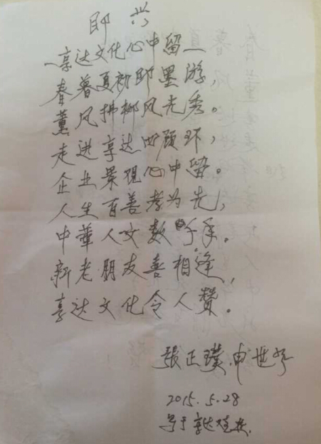 年过八旬的张大爷现场作诗一首赞美亨达孝亲文化