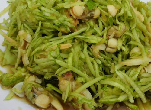 黄瓜拌蛤蜊肉,蛤蜊肉大口感鲜美;
