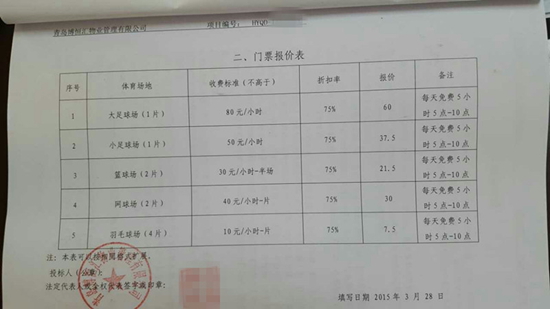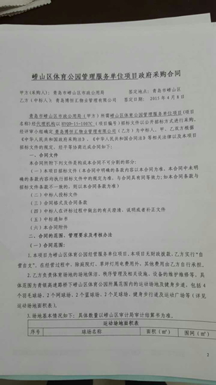 那么,崂山区政府方面究竟对于此事有着怎样的说法与理解呢,记者最终联系到了崂山区市政公用局的一位知情工作人员陈先生,他拿出了政府与该物业管理公司的招投标合同,对记者解释道:“该公园是市区两级财政,象征性的收取管理费用,崂山区政府部门也是经过了深思熟虑。最近许多市民打电话来咨询此事,我们也表示深圳路体育公园是对市民免费开放的,但是部分场地需要收费,此举并不是为了盈利,而是为了能正常做好体育公园的日常维护,如场地设施、场地卫生、场地看护等问题,这些维护人员的工资成本也是需要算入的,而这些都需要青岛博恒汇物业管理有限公司自己承担,政府除建设外不会再掏钱代为维护。”