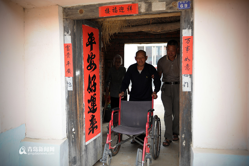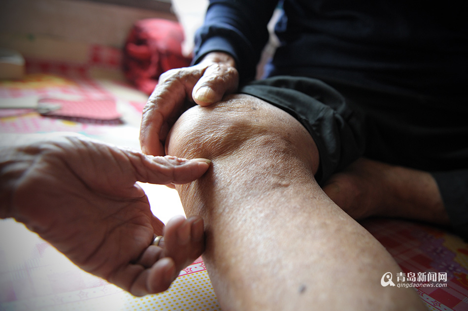 从王老的讲述中,青岛新闻网记者仍能感受到王老在40年代的激情澎湃。由于腿部受过伤,王老的右腿已明显变形,老爷子现在只能扶着轮椅慢慢行走。(青岛新闻网记者 徐恺 摄影 孙志文)