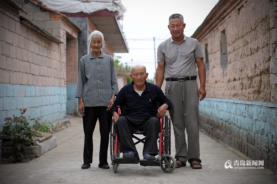 图为王月海老人与他的老伴儿及三儿子合影。王老目前和老伴儿单独居住,三儿子就住在本村,时常去探望。(孙志文 摄)