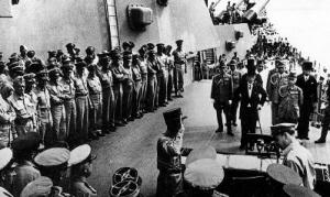 1945年9月2日上午,日本投降的签字仪式于停泊在东京湾的美国战列舰“密苏里”号上举行。