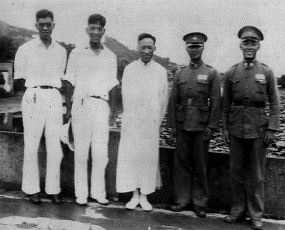 叶企孙(中)、熊大缜(左二)与抗战士兵合影。图片来源:北京日报