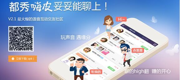 和陌生人说话,不紧是对自己的一种挑战,也可能是下一段美丽童话的开端,网络上的陌生人社交为此而生。都秀视频一直致力于陌生人社交平台,在PC平台上广受追捧的都秀视频聊天室就是证明。都秀嗨皮是都秀针对手机开发的全新产品,它依据手机和移动互联网的特点以至于并没有选择擅长的视频为载体,而选择了更适合手机的语音和文字为载体。语音是人与人交流的主要载体,他拥有文字不具有的很多属性:比如同样的字不同声调或者不同语气他的含义就不同,这是文字无法比拟的。而且语音更具有识别性,不同人的音色是不同的。单纯的语音虽然不能如视频一样看到对方的表情,但是对于网络上的陌生人来说,他能更有力的促成聊天行为,因为一般人在没有陌生人目光的关注时才会更自在,更爱说话。