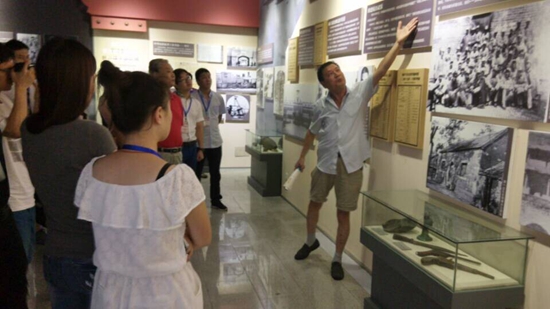 在参观完抱犊崮抗日纪念园之后,名博大V、媒体记者一行来到了枣庄铁道游击队展览馆。枣庄铁道游击队展览馆由枣庄人潘福安于2014年创办,潘福安坚持义务管理、讲解,不收门票,让更多人了解历史,铭记历史。铁道游击队,是抗日战争时期活跃在枣庄一带的一支抗日武装,成立于1940年1月25日,铁道游击队挥戈于百里铁道线上,与日本侵略者展开殊死搏斗。1945年12月2日,驻枣庄和临城日军千余人携带8挺重机枪、130多挺轻机枪、其余枪支1400余支、火炮数门、子弹千余箱和其他军用物资,正式向铁道游击队投降。如此规模的日军,成建制向一支不足百人的抗日游击武装投降,在当时的受降行动中十分罕见。