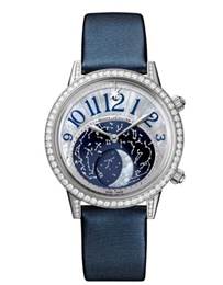 Rendez-Vous Moon 约会系列月相腕表配备月相显示盘,赋予了这一传统复杂功能全新的美学意义。月相显示盘就如腕表上的一颗明星,散发珍罕独有的风采,优雅大方的全新设计体现了大工坊自由无拘的创意。积家与沉醉于宇宙之美的女性分享这份对漫天星宿的热爱,来自浩瀚宇宙的绵绵爱意,日久情长。