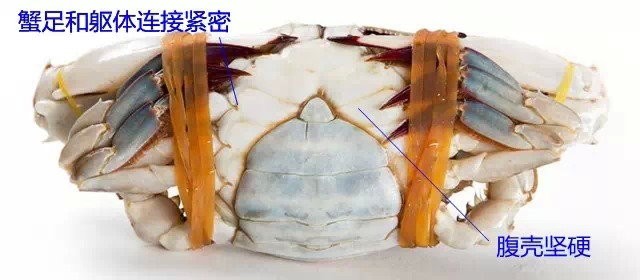 ⑤看蟹足,蟹足和躯体连接紧密,提起蟹体时蟹足坚硬,不松弛下垂的最肥满;