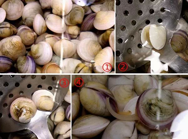 ②不要以为选开口的蛤蜊就是活的,大错特错!在水里开口的蛤蜊,可能已经死了很久了!