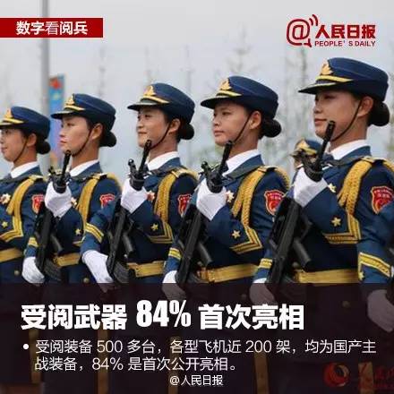 此次阅兵拟动用40多种型号装备500多件、20多种型号飞机200多架,大多数装备都是国产新型现役主战装备,84%都是首次亮相。