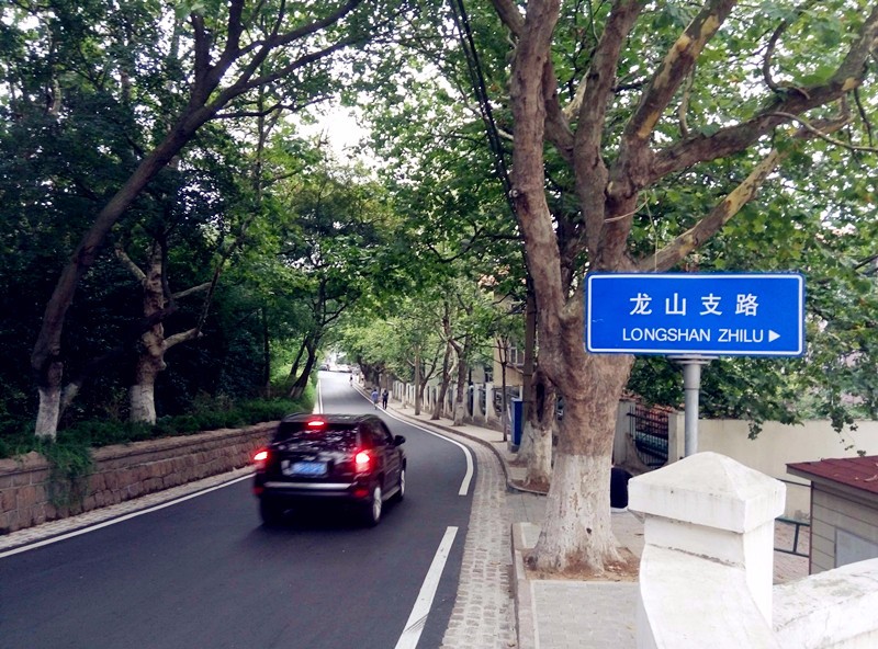 有资料说,龙山路是1923年依山劈石填沟建的道路。当年的路面是一条山涧,俗称大沟,由江苏路修一个大石堤通往龙山路。龙山路北端与齐东路、伏龙山路、苏州路、江苏路、观象一路等5个路口相会,也是老城区的一条重要街道。