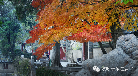 太清宫步月廊红枫是崂山观红叶最佳观赏点之一。
