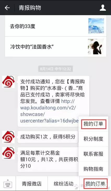 进入“青报购物”微店→右下角选择“我的订单”2