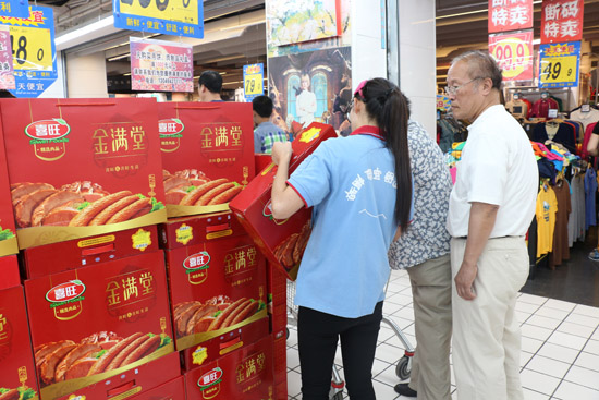 一位顾客刘女士说道:“我们家一直就很喜欢喜旺食品,平日里都会买些火腿、牛肉来吃。马上就要中秋节了,我打算买一些礼盒送给亲戚朋友,让他们也尝尝。而且喜旺礼盒包装精美,送礼有面子!”