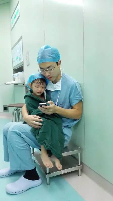 这几天,很多人的朋友圈被一组手术室的温馨照片刷屏了:一位穿手术衣的男医生怀抱一位穿病号手术服的小萝莉,医生陪着孩子看手机。