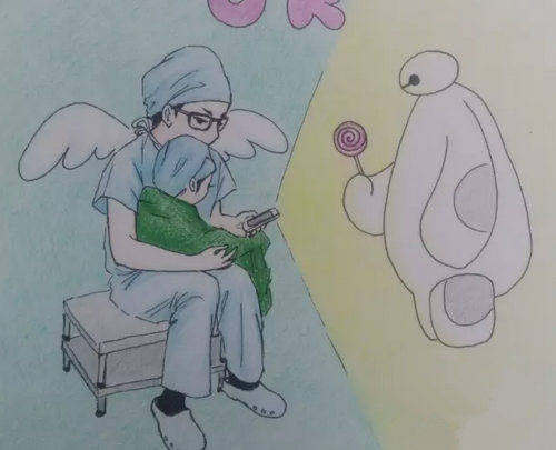 记者还找到了画漫画的作者,是邵逸夫整形外科朱医生,她说,在手术室里,医护人员对除了婴儿以外的孩子有类似的安慰,用语言、用眼神、用怀抱来安慰他们,手术室里几乎所有人都这样做过,这种画面十分常见。