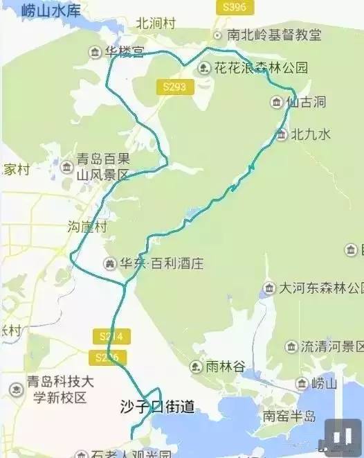 汉河-大石村-北九水-仰口隧道-枣行村-南鞍子-海大-汉河