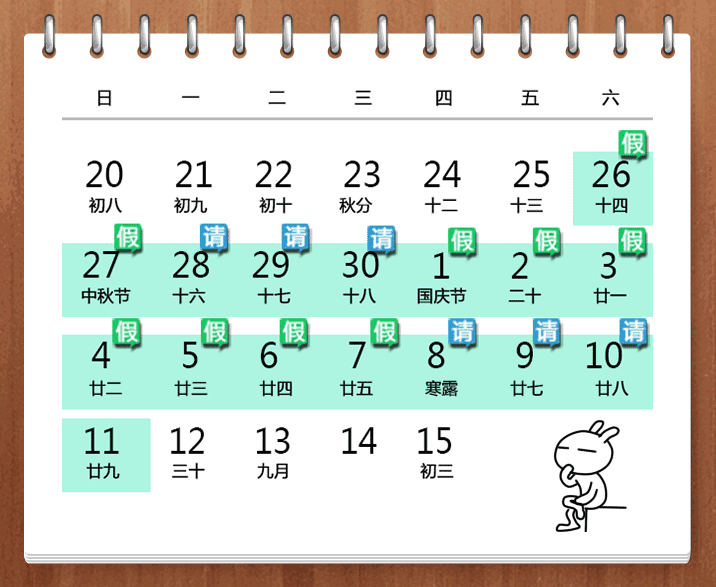 中秋国庆挨到一起,多么难得的拼假机会!这样请假最为爽快,扣点钱又算什么呢?