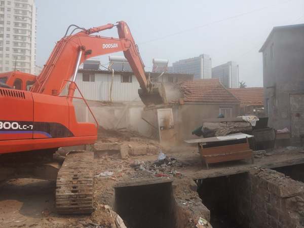 位于青大一路存在了20多年的违法建筑片区终于被彻底清理。近日,中韩街道办事处与崂山城管等多部门展开联合执法,出动执法人员30名、大型挖掘机2台,对青大一路存在消防安全隐患的门头房及几处外来务工人员租赁房屋进行了拆除,面积4000余平方米。崂山城管麦岛中队副中队长靳云飞介绍,此次被拆除的违法房屋的土地归大麦岛社区,最初是当地村民自己建设的房屋,由于历史原因,本身缺乏必要的规划和审批手续。“这些违法建筑长达20多年,依托周边高校,大多数房屋用来经营小吃店、网吧等,不仅是消防还是食品方面,都存在安全隐患。”靳云飞称。
