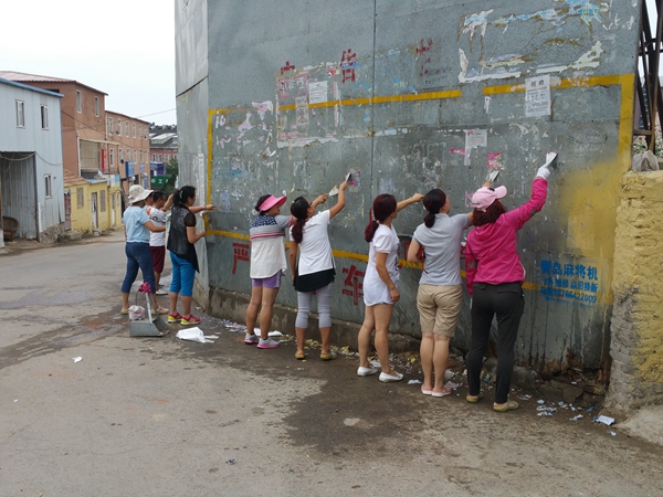 据了解,自今年六月开展农村社区环境卫生专项整治行动以来,社区组织了由“两委”成员、党员、居民代表、办公室工作人员、环卫志愿者和团青年组成的环境整治队伍,对社区内的“三大堆”、乱贴乱画、占路经营等现象进行集中清理。“环境整治期间,我们‘两委’成员每天都在社区里进行清理巡查,周末也不休息,很多工作都是亲自上阵。”王本辉介绍,在清理“三大堆”、拆除灯箱广告、铲除小广告等工作中,全部都是社区人员自己动手干,没有雇佣其他工人。