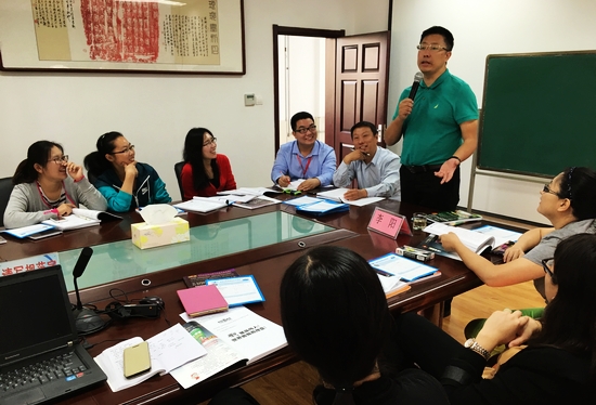 2015年10月15日上午8点30分,李阳疯狂英语创始人李阳带领疯狂英语团队来到青岛经济技术开发区实验初级中学在和中学领导以及英语组全体教师在会议室召开专场研讨会,为英语老师提出了许多英语教学的建议,还赠送英语老师《疯狂英语》的教学资料,然后签名并合影。甚至有几位非教英语的老师闻讯赶来参加教学研讨。