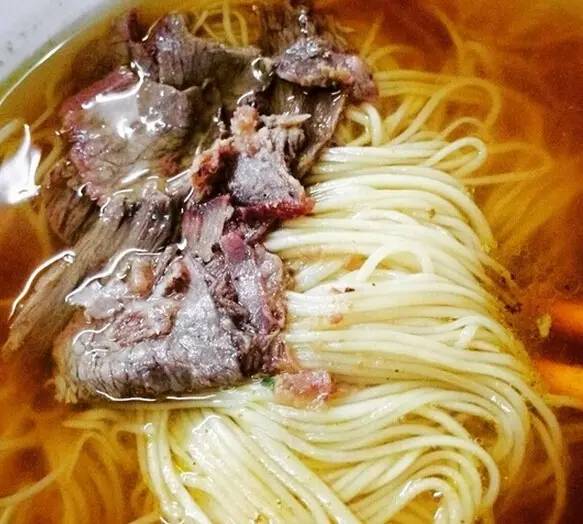 点评:藏于深巷居民老楼中的老面馆。这家店开了二十三年,老板年看着挺年轻,对客人特别热情,虽然店面小小,饭时好多食客会选择坐在外面大汗淋漓地吃一碗面。因为是手工拉面,所以会粗细不均,煮出来口感会有些软硬不齐,但是面的老汤口味调和的不错,汤头有淡淡的绿色,喜欢她们家的辣椒油,挺给力的。面分大小碗,都能另加肉,喜欢吃肉的还可以点他们家的微博烤肉,鸡心,个人喜好他家腱子肉,嫩一些,肉块很大很实惠。还有凉拌肉配了好些葱丝。最喜欢他家的老汤豆腐,方正的一大块,好多蜂窝眼 很入味。但是夏天太热,为保证食物品质,是不做豆腐和卤蛋的。