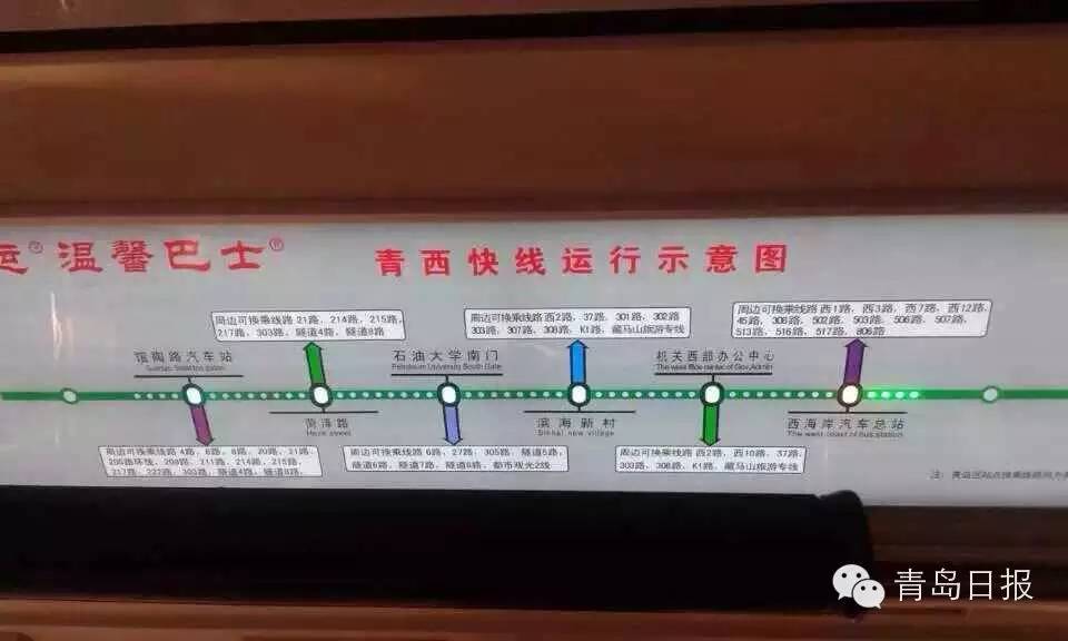 青岛市区至黄岛又多了一趟隧道公交,这条线路为青西快线公交,今天起正式开通,全程仅设6个站点。车内配有Wifi、饮水机等近20项服务设施,票价为4元/人,使用琴岛通卡乘车可享8折优惠。经常往返市区与黄岛之间的小伙伴有福了,详细乘车指南往下看吧↓↓↓