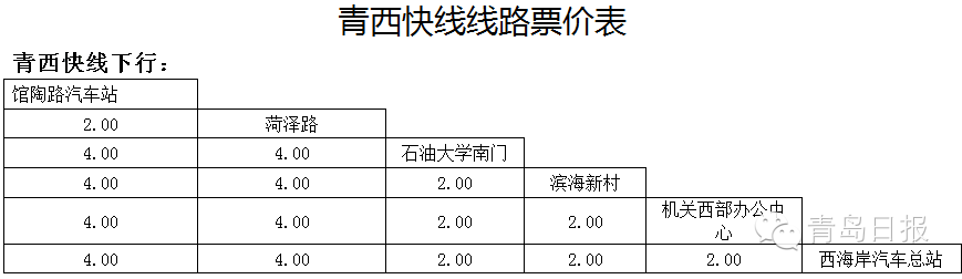 乘坐青西快线去西海岸汽车总站车票是4元,乘坐长途车过去车票是25元,自己开车光是过胶州湾海底隧道的通行费就需要10元,这还没算上油钱。