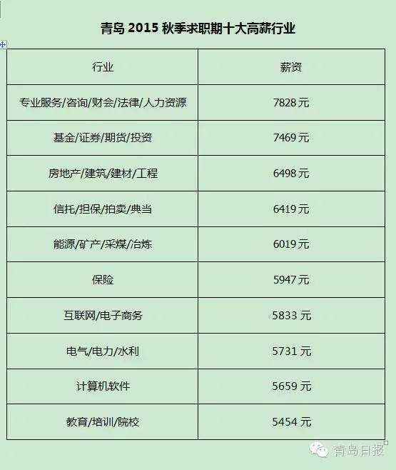 先来看看秋季求职季青岛十大高薪行业及其薪资情况: