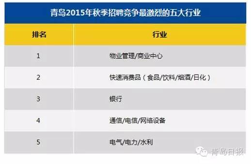 从竞争激烈程度来看看,青岛市竞争最激烈的五大行业分别是: