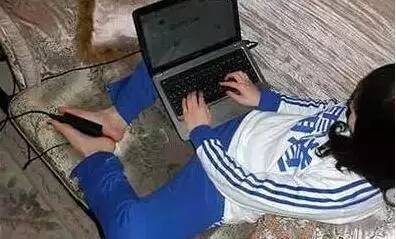 自从这位妹子夹住了电脑电源器,双脚也热了,下载速度都快多了。只是,电脑也已经快抽了。