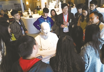 10月30日,记者在多彩万象旅游城游客服务中心看到,2015首届全国石雕石刻设计大赛国内外的精美石材产品吸引了众多市民前来观看。