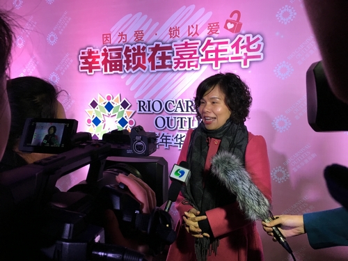 双十一当天,嘉年华澳乐购不仅启动“幸福锁”大型群众共创型地标,提供1314把幸福锁,供情侣或夫妻把爱化为作行动,同时还邀请了知名主持人Summer现场做幸福告白,即将迈入人生重要旅程的Summer,回憶起那訂婚的那一天:“我拿着话筒对他喊“你愿意娶我么”他说:“我愿意”。虽然场面不震撼,虽然没有花,虽然没有戒指,我依然感觉很幸福!”她将㩗手与她的人生伴侣共同扣上第一對”幸福锁”,将他们的幸福承诺和许在海上嘉年华,这个属于幸福的地标。