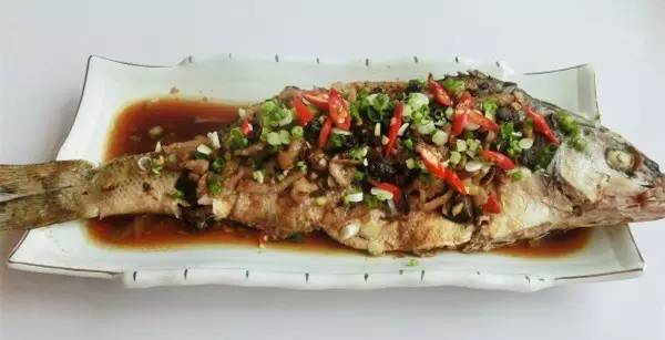 5.锅中加水,水滚开后,将鱼放在蒸架上,需大约蒸15分钟,取出再洒上一些葱花、红椒,烧一小勺热油,浇上即可。