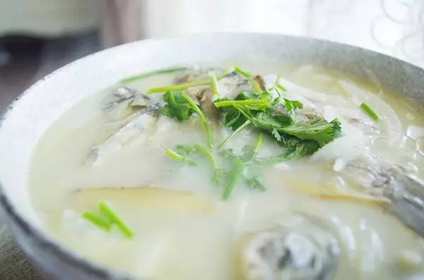 5.将腌好的鱼片放入汤中,稍凝固后用筷子划散,等鱼片煮至变色,加鸡精提味后盛出,浇少许热油,撒上香菜即可。