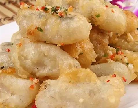 1.用炸鸡粉腌好九肚鱼,20分钟左右
