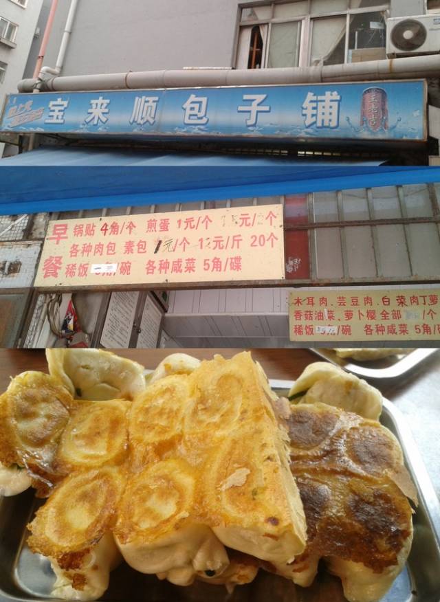 这家店在金城灌汤包斜对面。推荐肉包子,他们家的小米稀饭挺好喝的,炉包素的是角瓜的,0.4元一个,肉的是0.5元一个。炉包的味道挺不错的。锅贴是圆葱和肉的,也很好吃。