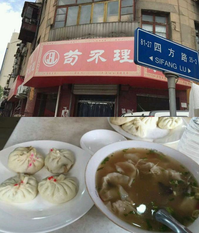 几十年了,苟不理包子店仍然坚持在四方路,典型的国营面食店的大门,破街之中的破门面,生命力却很顽强。里面的服务员都是大妈大叔级的,穿着短白褂,和食客说话的时候,不忘和同事聊天。此处的包子是按“两”卖的,而不是按照“屉”。虾虎肉扇贝肉目前价格太高,就不卖了。三鲜猪肉和虾仁卖得最好。苟不理包子的面发的很棒。