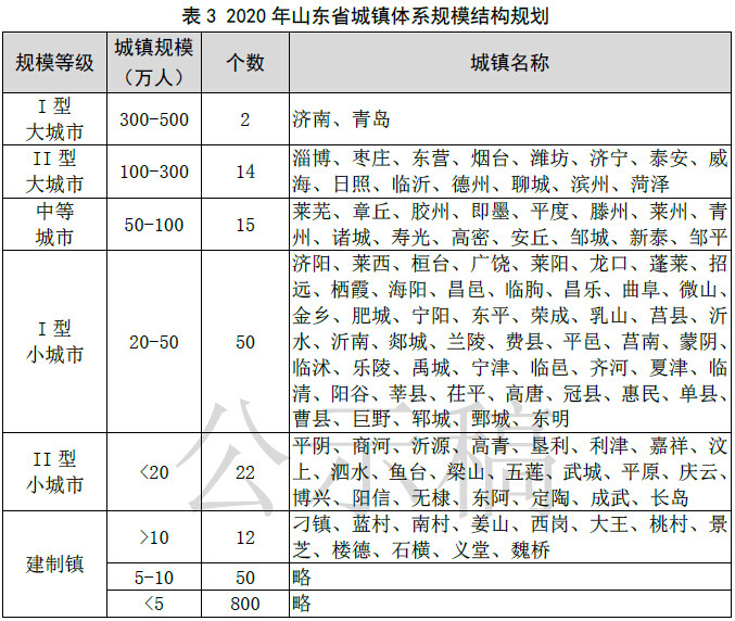 规划显示,到2020年,临沂、日照、德州等14市城区人口达到100-300万,成为II型大城市。到2030年,济南、青岛两市城区人口500万以上,进入特大城市序列,临沂、烟台两市城区人口达到300-500万人,成为I型大城市。淄博、枣庄、东营等12个城区人口100-300万。同时,山东省到2030年将建成7000个农村新型社区、5000个中心村、4000个特色村。