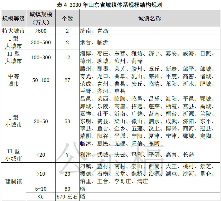 △到2030年,济南、青岛两市城区人口500万以上,进入特大城市序列,临沂、烟台两市城区人口达到300-500万人,成为I型大城市。