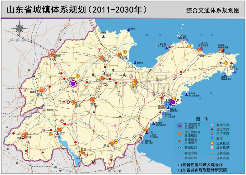 △图例显示,到2030年,济南和青岛将成为全国性综合交通枢纽。