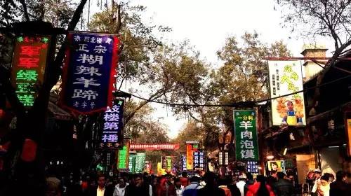 回民街不是一条街,是西安市中心回民聚集区内多条街道的统称,由北院门、北广济街、西羊市、大皮院等数条街道组成,当地人习惯称那里为“回坊”,也称“坊上”。回民街是西安小吃的集中地,这里虽然被当作了针对外地游客的旅游点,但其实本地居民也经常来这里吃吃小吃、逛街休闲。来到这里,你能够吃到几乎所有的西安小吃。