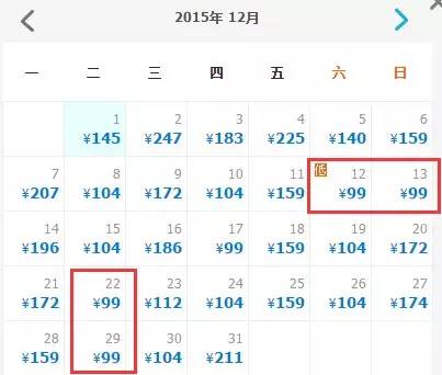 青岛去上海虽然折扣机票经常有,但12月,竟然有四天有低至99元的飞机票哦!简直白菜到不能再白菜了,有木有!