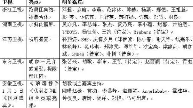 ▲各卫视跨年晚会拟邀明星(名单统计截至12月11日)