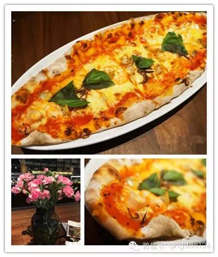 绿酱鸡肉通心粉好评,满分。加了蒜,舍得放料,味儿很足。海鲜披萨有鱿鱼,有虾仁,薄底的饼,边角烤得酥脆。小芒果蛋糕不确定是不是就这么叫……但是蛋糕上的的确确是覆了一层芒果,很甜,感觉更像是芒果罐头。