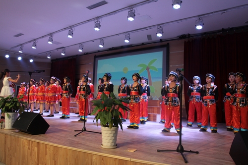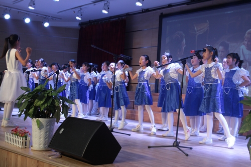 高年级的孩子朝气蓬勃,歌声嘹亮。《萤火虫之歌》旋律优美,孩子们甜美的声音似乎将我们带到了静谧的森林,稀疏的星光之下,萤火虫结伴飞舞;《少年少年祖国的春天》旋律流畅,整齐的童声充分表现了广大少年儿童在社会主义祖国的培育下茁壮成长和他们为建设祖国的明天而努力学习的坚定信念;《游击队歌》曲调轻快、流畅,学生富有活力的演唱,仿佛让我们穿越到抗日年代,小英雄们抗击日寇,勇敢机智,巧妙、灵活地与敌人周旋;即将毕业的六年级学生用一曲《每当我走过老师窗前》表达了对老师深深的感谢和依依不舍之情。
