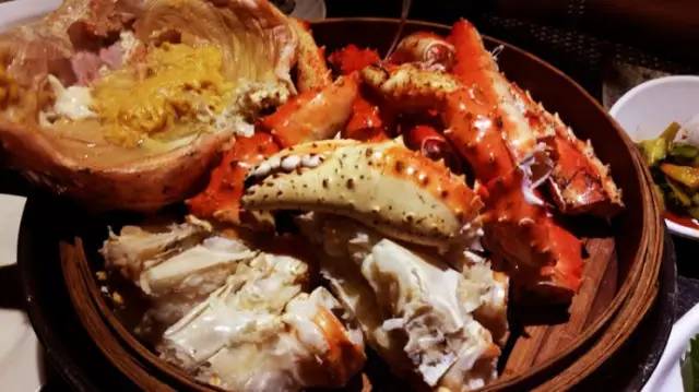 来自朝鲜的深海美味海牧场毛蟹坊位于索菲亚国际大酒店2楼,环境特别好。有帝王蟹、毛蟹和板蟹,可以根据自己的口味选择清蒸或辣炒,蟹子很肥很新鲜,个头也都不小。餐前小菜很多,服务还算可以。